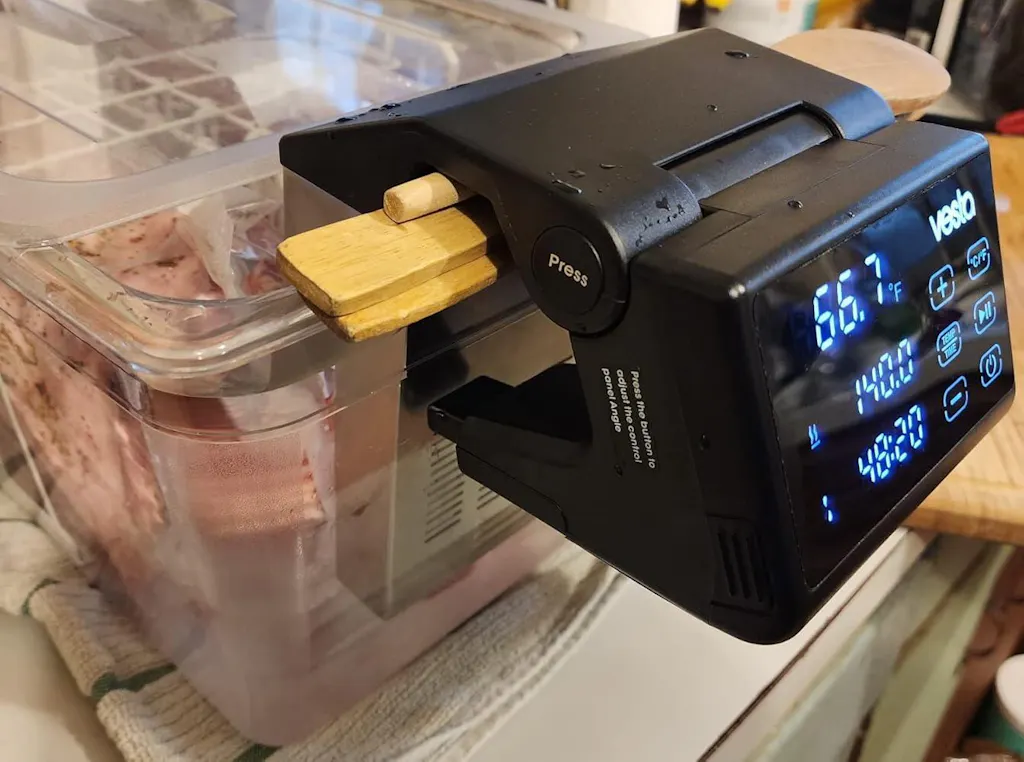 The fold-over design sports the large, easily visible display but it is also positions the electronics away from damaging steam that can impact other sous vide machines.